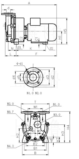 ◆全部設有汽蝕保護管接口,如在極限壓力下工作,開啟汽蝕保護管接口(或與分離器連接)可在最大限度保證吸氣效果的情況下消除汽蝕聲,并對泵進行保護;